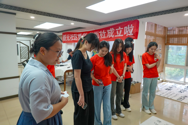 座谈会上,实践队员们深入了解了新元社区在构建老有所学、老有所乐方面的卓越实践。社区匠心独运,创立了一系列以传统文化为底蕴的老年大学兴趣班,涵盖国学精粹、古典戏曲、墨香书法及汉字艺术等多元领域,为老年人搭建了展现风采、传承文化的舞台。漫步社区,一幕幕温馨场景映入眼帘:老人们或凝神聚气,于宣纸间挥洒自如地练习书法;或身着戏服,一丝不苟地彩排戏曲,其乐融融。