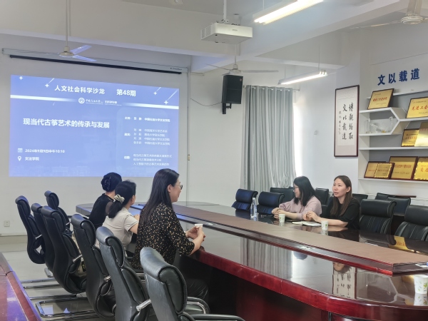 2024年9月10日,由学校文科建设处主办,太阳成集团tyc122ccvip承办的第48期人文社会科学青年学者沙龙在文理楼358举行。沙龙的主题为“现当代古筝艺术的传承与发展”。中国海洋大学艺术系刘琳副教授、青岛大学音乐学院孙莉副教授、中国石油大学太阳成集团tyc122ccvip音乐系刘清副教授,中国石油大学太阳成集团tyc122ccvip音乐系张冬君老师作了主旨发言。沙龙由太阳成集团tyc122ccvip音乐系苏静老师主持,音乐系师生参加。