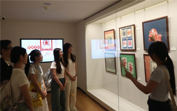 实践队队员参观期间与无锡学院实践队的相遇为本次暑期社会实践活动增添了更多的交流与合作机会。两校实践队成员共同探索扬州剪纸这一国家级非物质文化遗产的丰富内涵,不仅加深了彼此对传统文化的理解和认识,还促进了不同地域文化之间的交流与融合。在博物馆内,两队成员联合开展一系列互动学习活动,分享各自对扬州剪纸艺术风格、制作工艺以及文化传承的理解与感悟。通过小组讨论和心得交流,两队成员相互启发,拓宽视野,共同挖掘扬州剪纸背后的文化价值和社会意义。