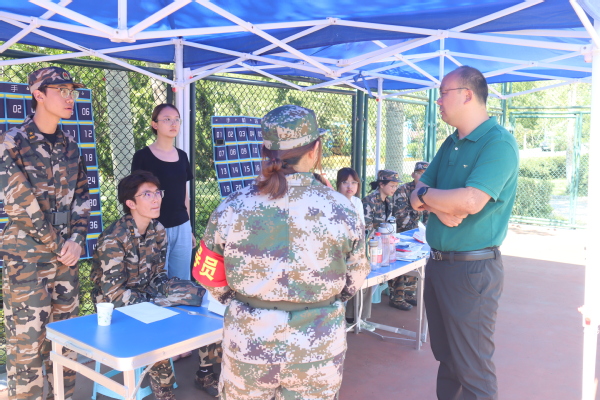 伴随教官一声令下,文法学子迅速行动,彰显青春风采。稍息、立正、蹲下、起立等动作行云流水、一气呵成。随后,教官带领队伍分组练习踢正步,耐心分解动作要领并加以指导。文法学子也牢记教官要求,保证注意力集中,腿部绷直、脚尖下压、摆臂有力,以高标准落实行动。在此期间,党委副书记陈熙亲临训练场,陪伴学生们进行训练,了解新生训练状态,与辅导员分享军训经验、交流军训工作。