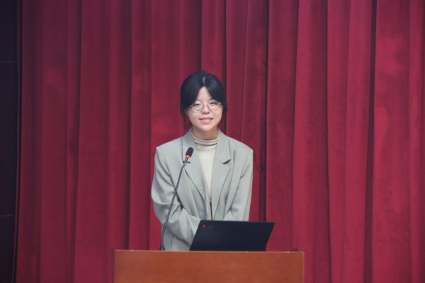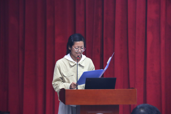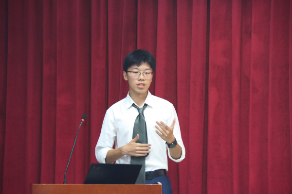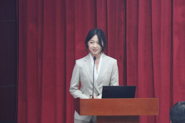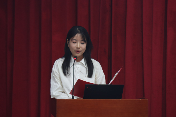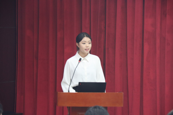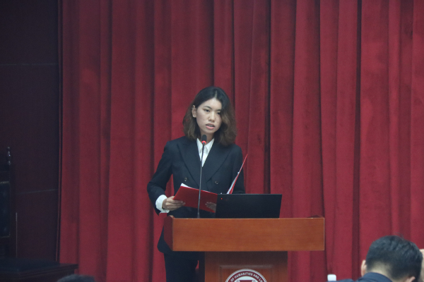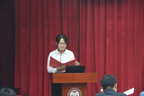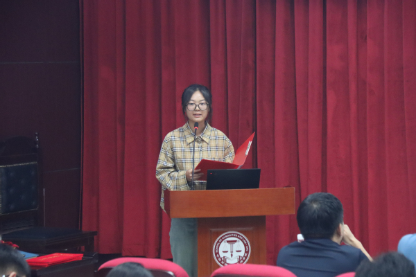 其中,法学2201班杨富媛的演讲深入剖析了宪法对中国特色社会主义“四个自信”的法治支撑,阐释了宪法在确立道路、理论、制度和文化自信中的核心作用,强调了宪法作为国家根本大法,是增强国民自信、推动社会进步的法治基石,多维度阐述了“以宪法回答‘何以自信’”的议题。法学2203班田一何则以自己参军入伍、用行动践行宪法的经历现身说法,让观众感受到宪法于守卫国防安全与牢铸个人使命感的重要意义。他们精彩的演讲表现感染了在座的每一位观众,赢得了阵阵掌声,获得了评委们的一致好评。