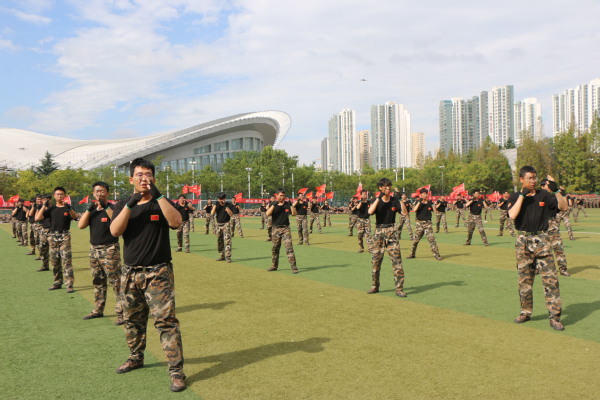 在军训成果汇报展示中,学生们充分展现出了军训的优良效果。分别展示了匕首操、捕俘拳以及综合演练,全面体现出学生的身体素质变化和精湛技艺。