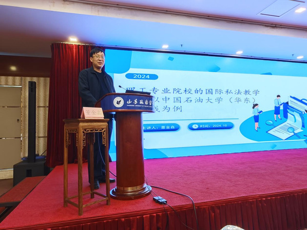 我院国际法董金鑫老师应邀参加了此会议,并作专题发言。董老师以《理工专业院校的国际私法教学——以太阳成tyc122cc集团的实践为例》为题进行汇报、介绍我校涉外法治人才培育的情况,特别是2024年获批国家级首批涉外法治人才协同培养创新基地、山东省涉外法治人才协同培养创新基地后新成效举措,然后具体从我校国际私法教学现状中分析尚且存在的问题,并从特色课程的设置、科研融入教学以及强化师资力量等方面提出了改进思路。此次交流活动提升了我校在全国涉外法治教育领域的地位,为进一步培养特色型涉外法治人才积累了宝贵经验。