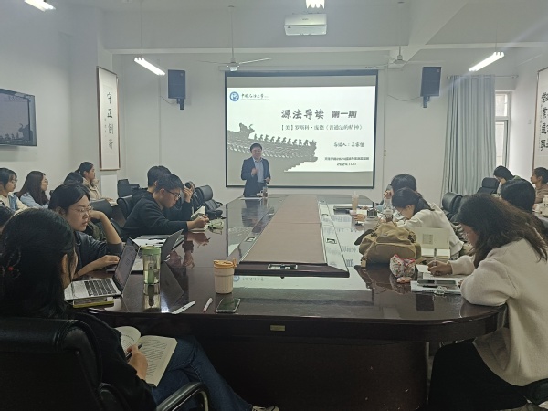 近日,学院在文理楼358举办“源法导读”读书会第一期活动。读书会由法学系教师、2024级涉外法治实验班班主任吴睿佳担任导读人,第一期导读书目为美国著名法学家罗斯科·庞德的代表作之一《普通法的精神》。读书会活动采取自愿报名参与,来自2024级涉外法治实验班的大一学生和部分高年级本科学生及硕博研究生共30余人参与本次读书会活动。