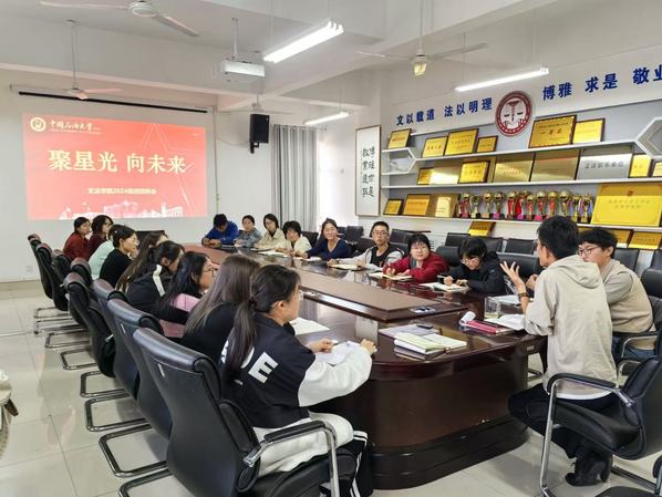 会议共有优秀成果展示、未来工作部署、干部职责明确三个环节,并围绕“如何让每一颗小星星都闪闪发光”这一问题展开了深入讨论。会议伊始,张琳苑向学生们展示了优良学风班、先进班集体的优秀成绩,给予了大家努力开展学生工作的方向与动力并对近期工作进行部署。“这次班团例会给大家交流学院和班级建设提供了契机,同时优秀班级的经验分享也为干部们的工作提供了一定方向。”汉语2402班长周宣漪说。
