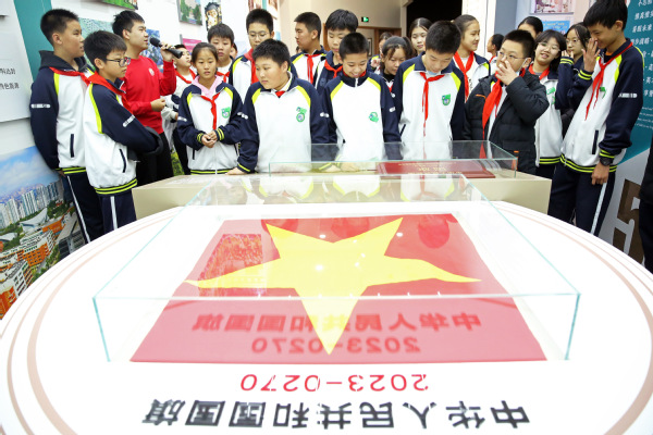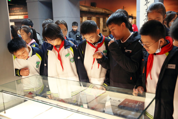 随后,学生们前往我校校史馆进行参观。讲解员绘声绘色的讲述带领学生们穿越历史,体悟石大峥嵘岁月。了解我校波澜壮阔的发展历程后,讲解员还为学生分享了在各领域大放异彩的杰出校友故事和他们所取得的卓越科研成果,鼓励学生向模范看齐。参观间隙,志愿者汉硕2301相凯馨分享道:“作为志愿者,看到他们眼中闪烁着对学校的敬仰和对未来的憧憬,我深感责任重大。我希望这次活动能让他们对石油工业有更深入的了解,激发他们内心的爱国情怀和责任感,为他们未来的成长之路点燃长明灯。”