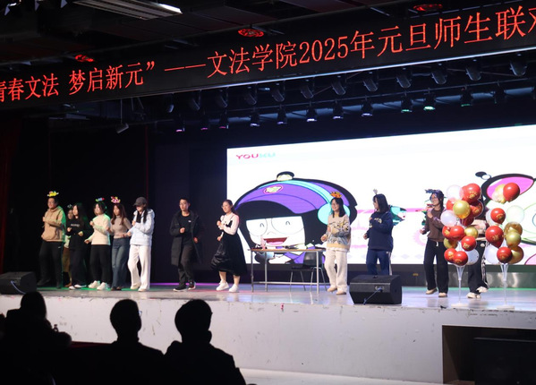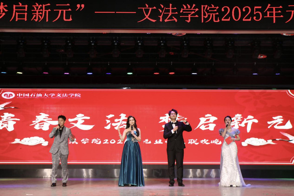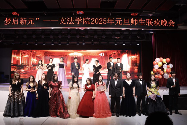 祥龙摆尾辞旧岁,蛇吐瑞气贺新春。在这辞旧迎新的美好时刻,2024年12月24日晚,“青春文法,梦启新元”太阳成集团tyc122ccvip2025年元旦师生联欢晚会于唐岛湾俱乐部多功能厅圆满举办。曹晗硕、王红艳、张耀中、成方祎主持晚会。党委书记姚成郡携学院领导班子成员及全体辅导员出席晚会,2024级全体本科生、研究生及其他年级学生代表欢聚一堂,共同见证了这场视听盛宴。