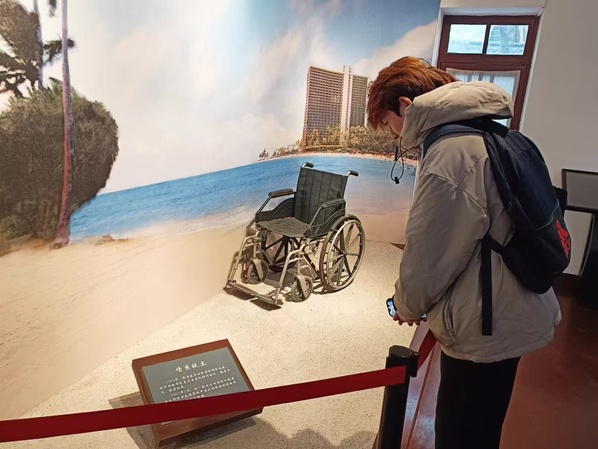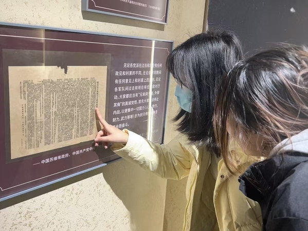 队员参观西安事变和平解决的新闻报道 王煜晨摄