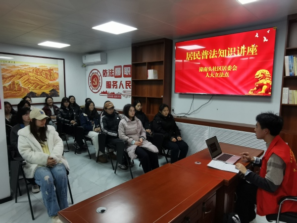 活动伊始,支部成员们来到了濠南头社区,在社区的党群服务中心开展了“生活中的法律法规”居民交流座谈会,通过向居民普及法律诞生的过程,从立法基础、立法过程、立法挑战谈到对未来立法的展望,使大家了解到立法的严谨性、广泛性和有效性,同时也意识到立法中也同样存在着不可忽视的问题,坚定支部成员为法治事业做出贡献的决心。本次交流座谈会使居民了解了立法的过程和影响,增强了居民的法治意识,法治观念。