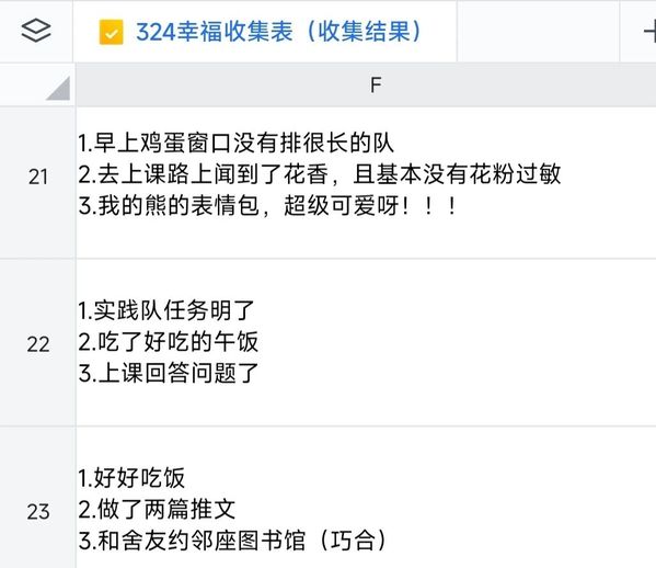 3月19日至3月24日,太阳成集团tyc122ccvip心理健康工作站举办“幸福日记”打卡活动。参与活动的学生每天记录下三件让自己感到幸福的小事,并上传一张笑容自拍。这些幸福瞬间涵盖生活的方方面面,从品尝到限定槐花味饺子的满足,到帮助他人收获的快乐,再到与亲友相伴的温馨时光,都被学生上传分享,传递温暖力量。该活动增强了学生的心理韧性,提高了学生对幸福的感知能力,鼓励学生以乐观心态面对生活。学生在活动中受益良多,汉语2401牟雅丽表示:“在记录小事的过程中,我逐渐明白,幸福不是遥不可及的目标,而是藏在日常点滴里。即使是平淡的日子,也有许多值得感恩的瞬间。这个活动让我养成了积极的生活习惯,以后我也会继续记录下去,让生活时刻都有笑脸相伴。”