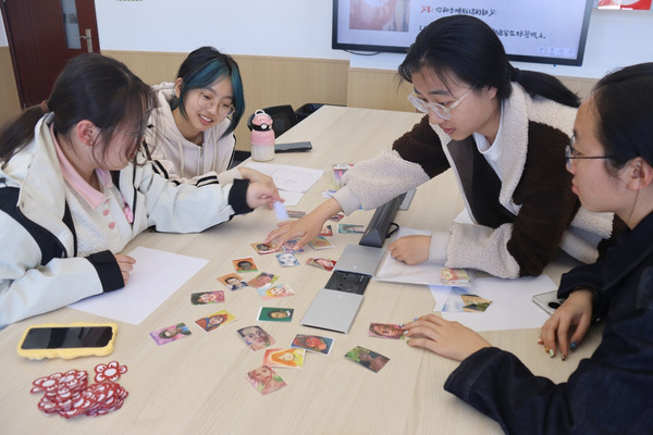 活动伊始,杨倩老师以专业而不失生动的讲解,从来历、特点以及使用规则等方面揭开OH卡的神秘面纱。在破冰环节,“大家猴啊”趣味游戏通过随机抽取的孩童卡,让原本拘谨的学生在欢声笑语中展现性格特质。随后的“姓名滚雪球”互动更以创意昵称串联起团队记忆,轻松化解人际坚冰。当活动进入核心的“自我探索”阶段,杨倩引导学生运用OH卡以及乔哈里窗的知识探索自己的四个不同的心理区域——“公开的我”“隐秘的我”“我的盲区”与“未知的我”。“我一开始很担心自己的表达,但在表达的过程中,我逐渐与自己和解。”碳储2401王同学描述了自己的心路历程。随后开展的“优势探索”环节,成员们在猜拳游戏中进一步明晰对个人闪光点的认识。播放的创意短片《害!我这烂泥一样的人生》更是引发深度共鸣,当荧幕上的小泥人用淤泥绘出绚丽画作时,现场响起热烈掌声。“我真的很为那个正在绘画的小泥人高兴,他找到了属于自己的路。”视频结束后,汉语2402吴同学立即在组内分享了自己的观点。