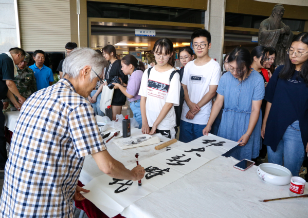 本次活动师生共同书写习近平总书记经典语录和励志名言,主要以学生参观书画展示和教师现场赠字的形式进行。学生们对书写的名言进行热烈的交流和谈论,激发了学生们的爱国情怀,营造了优秀传统文化和良好的学习氛围,使得师生更加关注传统文化的内核与张力。同时,也通过“中华腾飞”主题书画笔会,献礼祖国七十华诞,弘扬“不忘初心、牢记使命”爱国教育精神。