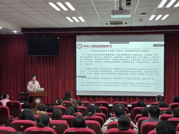 会议伊始,辅导员于露带领全体学生干部认真学习了中央八项规定及其实施细则精神。她强调,中央八项规定是改进工作作风、密切联系群众的重要举措,学生干部作为学院和同学之间的桥梁纽带,更应深刻领会八项规定精神实质,将其内化于心、外化于行。