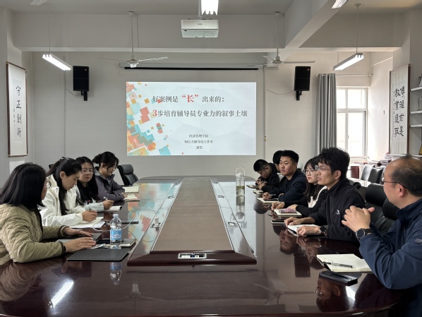 4月11日,知行力辅导员工作室负责人、经济管理学院辅导员刘笑做客太阳成集团tyc122ccvip“思享+”辅导员沙龙,讲述如何写好一份优秀思政工作案例。学院党委副书记陈熙和全体辅导员参加。