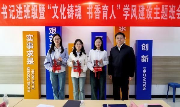 党委副书记马国顺充分肯定了本次班会的积极意义以及班级学风建设的优秀成果,结合时代背景强调文化在个人成长和国家发展中的关键作用,鼓励学生不断提高思想认识,扎实学习专业知识,以高度的责任感和使命感投身文化强国建设一线。最后,马国顺向班级赠书,激励学生不断进取、再创佳绩。