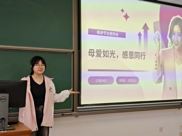 为弘扬中华民族孝亲敬长的传统美德,引导同学们感悟母爱的深沉,以实际行动表达对母亲的感恩之情,汉语2402班于5月11日在南教216举办了“母爱如光,感恩同行”母亲节主题班会。