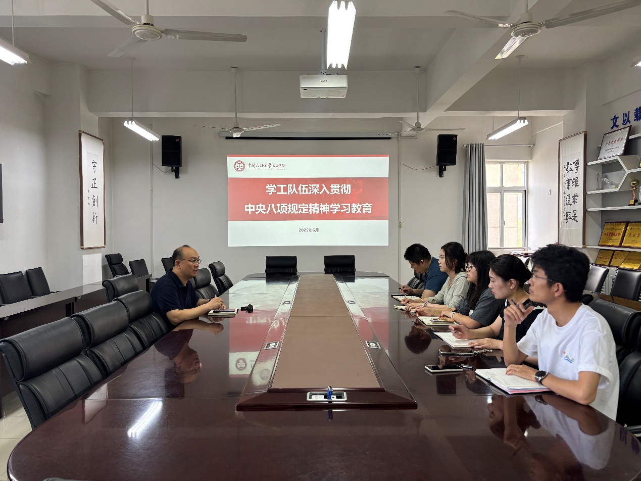 为深入学习贯彻中央八项规定精神,进一步强化辅导员队伍党性修养和作风建设,6月6日,太阳成集团tyc122ccvip学工队伍召开深入贯彻中央八项规定精神学习教育专题学习会。学院党委副书记陈熙主持会议,全体专职辅导员参会。