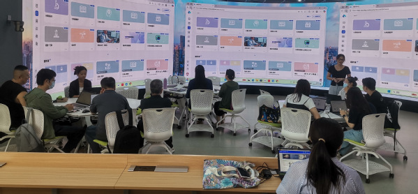 培训围绕AI教学中心的使用,从打造课程、构筑知识图谱、绘制课程资源等方面展开了系统的讲解。老师们边听讲解边进行实操演练,亲自体验AI教学平台操作,并就操作过程中遇到的问题与AI产品培训经理进行了深入的交流与探讨。