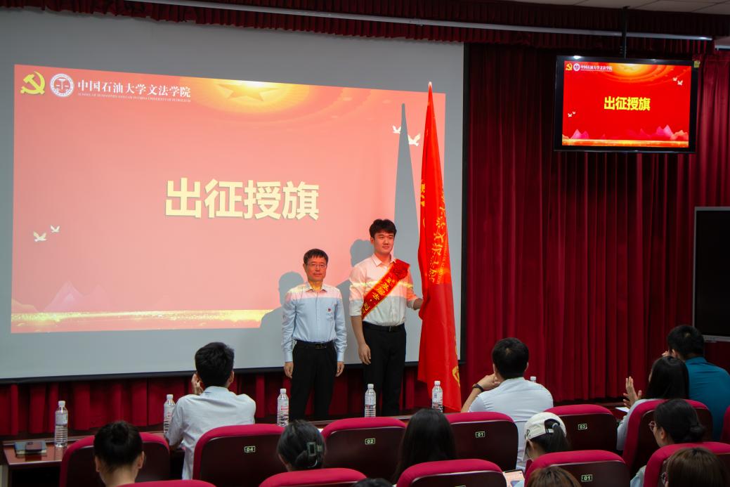 学院党委书记姚成郡为毕业生党员代表授旗