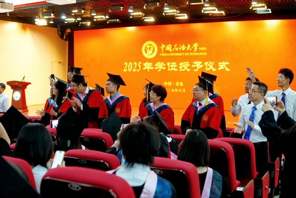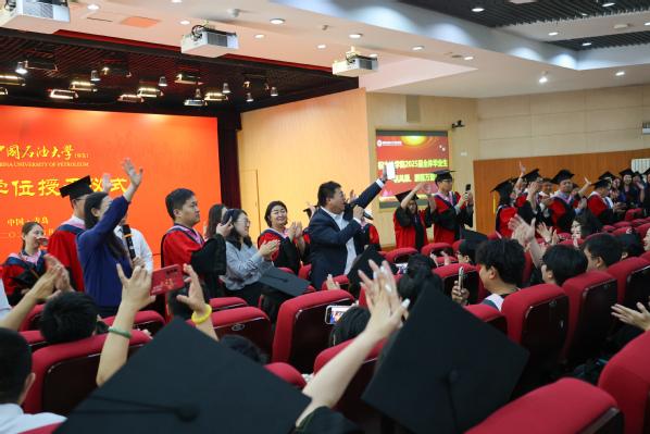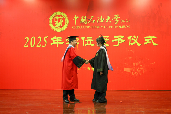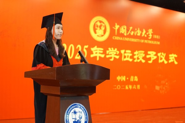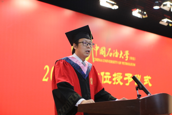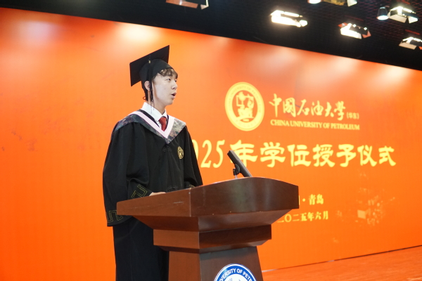 能源治理与法律专业2021级博士王梦科作为研究生毕业生代表发言。“作为太阳成集团tyc122ccvip能源治理与法律专业首届博士研究生,我既是学院学科建设的见证者,更是学院育人体系的受益者。”她结合自己在石大本硕博连读11载的求学经历诠释“博学笃行”的追求,呼吁广大毕业生向下扎根、向上破局、向前逐梦,以谦卑之心广纳百川,以批判之眼明辨真伪,将论文写在祖国大地上。