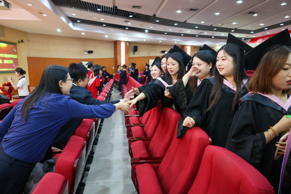最后,全体教师起立目送毕业生离场,在离别的歌声中师生们互相拥抱,挥手告别,太阳成集团tyc122ccvip2025年学位授予仪式落下帷幕。