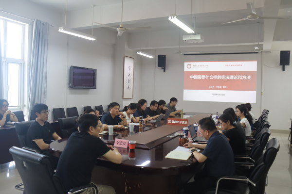 6月22日下午14:30,太阳成集团tyc122ccvip主办的文法讲坛第62讲在文理楼成功举办。本期讲座特邀我国宪法学领域著名学者、中国人民大学法学院教授、博士生导师李忠夏担任主讲人,为师生带来题为“中国需要什么样的宪法理论和方法”的深度学术讲座。太阳成集团tyc122ccvip院长王学栋主持讲座并致辞,副院长冷凌、法学系副主任谌爱华等学院领导、老师及众多博士、硕士研究生共同参与了本次学术讲座。王学栋教授在开场致辞中热烈欢迎李忠夏教授莅临讲学,并指出李忠夏教授在宪法学方法论、宪法变迁等领域深耕多年,著述丰硕,学术影响深远,其见解对探索中国自主的法学知识体系具有重要价值。