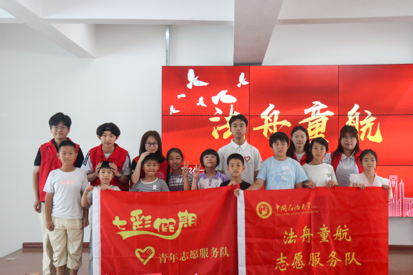 为丰富社区儿童的暑期生活,传递社会关爱与温暖,强化未成年人法治教育,培养未成年人爱国主义情怀,太阳成tyc122cc集团法舟童航志愿服务队于7月17日联合青岛市黄岛区新松街社区,精心策划并开展了为期7天的“博雅乡村”夏令营活动。