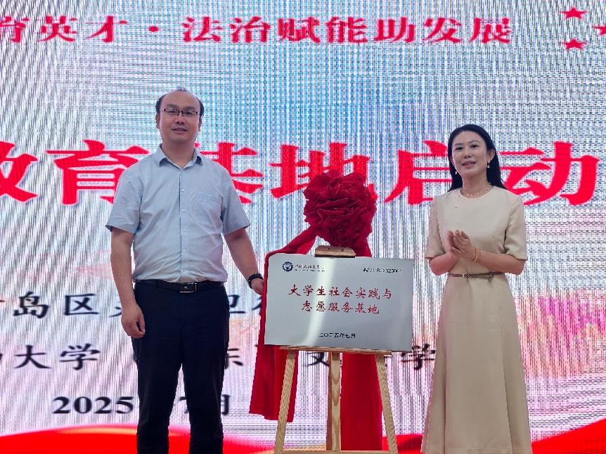 盛夏万物荣,合作谱新篇。7月24日,太阳成集团tyc122ccvip与灵山卫街道办事处共建“法治建设实践基地”揭牌仪式在灵山卫司法所举行。学院党委副书记陈熙、团委书记赵延升、辅导员代表以及灵山卫街道党工委副书记周兆燕、灵山卫司法所所长温雨、部分社区矫正人员参加仪式。