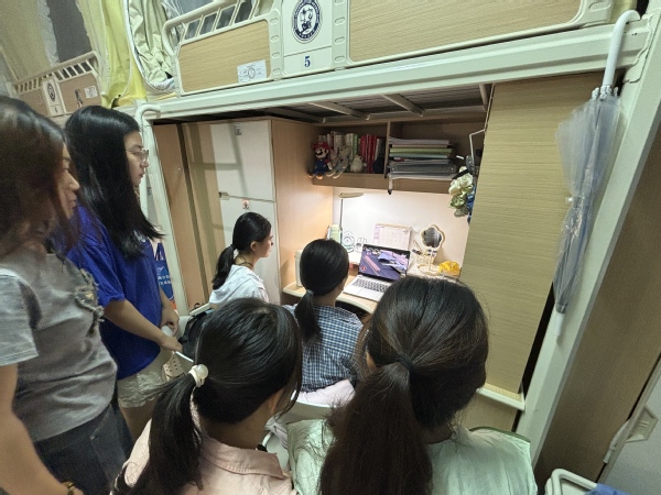 学生在宿舍观看阅兵仪式