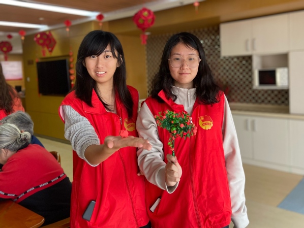 支部成员帮助老人手工制作“茱萸” 韩汝慧摄