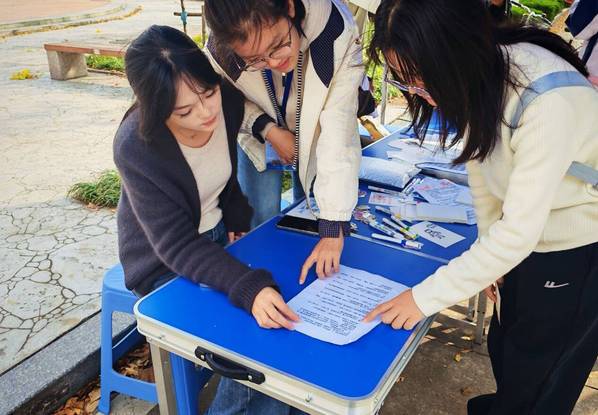 文法心站所负责的摊位设有“回顾过去·记录小羊的成长时刻”、“定格当下·趣味游戏”、“展望未来·书画遥寄”三项活动,学生们可任选其一,完成即可领取一份礼品。报名同学积极投身活动全程,以认真负责的态度圆满完成各环节任务,工作人员精准组织、分工明确、协同联动,保障活动各环节高效运转。