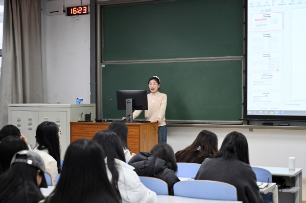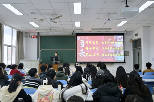 王红艳围绕“习法笃行、普法躬行、策法力行”三个篇章展开分享。她着重介绍了自己在多元创新式普法方面的探索与成果,通过展示模拟法庭、普法宣讲等丰富生动的实践案例,向同学们诠释了如何将法学专业知识与基层法治建设深度融合。王红艳鼓励大家不仅要筑牢法治信仰之基,更要勇于创新实践形式,积极投身于各类普法宣传活动中,在服务基层的过程中向下扎根,用实际行动点亮法治之光,谱写属于自己的青春奋进之歌。