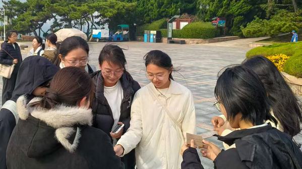 结束博物馆的参观,汉语2502团支部成员们齐聚小青岛公园,一场融合海军科创知识的趣味游戏会热闹开启。
