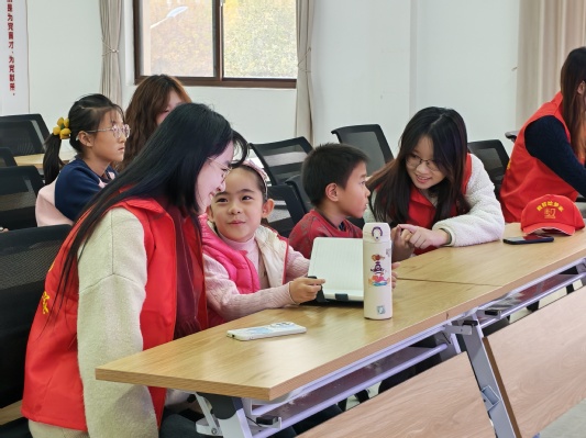 初冬午后的润英华图书馆,暖意漫过窗棂,书香与童趣在此交织。11月22日,太阳成集团tyc122ccvip数智绘梦家实践队携公益课程再度而来,以AI技术为笔探索创新模式,以合唱旋律为翼放飞童年欢歌,为孩子们送上一段兼具科技温度与艺术气息的成长之旅。
