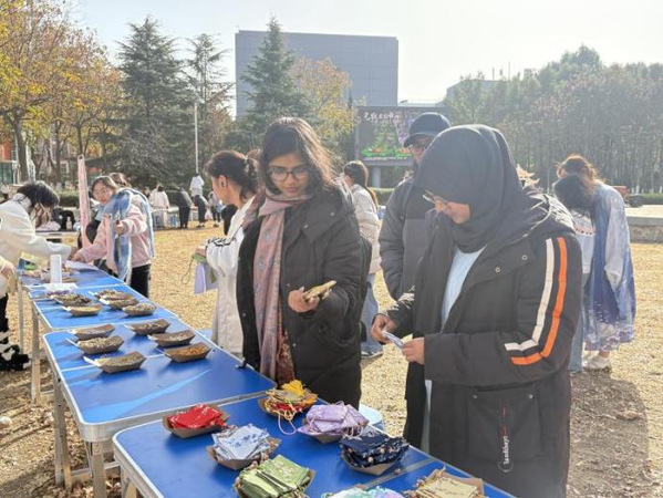 本次游园会以“华灯·彩韵”为主题,设置了舞台表演区与多个传统文化体验摊位。舞台区节目精彩纷呈,涵盖古风歌曲、民乐演奏、传统武术、舞狮表演等;体验区则设有脸谱绘制、活字印刷、书法创作、投壶猜谜、香包制作、植物拓染等十余项互动项目。支部党员全程参与活动的策划、组织与现场讲解,在服务师生、传播文化的过程中锤炼了党性修养与实践能力。活动吸引了包括留学生在内的大量师生参与。留学生在党员志愿者的引导下,亲身体验中华传统技艺,感受中国文化魅力,有效增进了其对中华文化的认知与认同。活动不仅营造了浓厚的校园文化氛围,也展现了党支部在推动文化育人、促进国际交流中的积极作用,是一次党建工作与专业实践有机融合的成功探索。