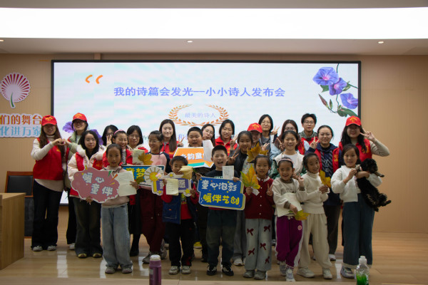 元宇宙课程结束后,孩子们在志愿者的带领下来到户外,开展萝卜蹲游戏,捡拾落叶,感受自然气息。重回教室后,他们以秋日所见所感为素材,认真书写并分享自己创作的小诗。童言稚语中,充满对世界的观察、对情感的体悟,展现了诗歌激发表达、滋养心灵的独特魅力。