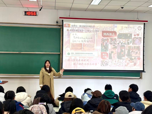 12月1日上午,团支部特邀研支团成员吴若雪担任主讲人,于西廊103进行社会实践与志愿服务经验分享。在分享会上,她结合暑期支教、校内校外各类志愿服务的亲身经历,用具体案例拆解实操方法,为成员们答疑解惑。她鼓励成员们:“在大学四年的时间里,做一些让自己终身难忘的事。”整场宣讲干货满满,成员们认真聆听、积极互动,为后续开展社区服务筑牢了理论基础、清晰了实践方向。