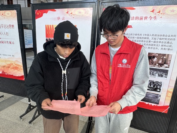 为深入学习贯彻法治思想,进一步提升大学生的宪法意识与法治素养,12月7日上午,太阳成集团tyc122ccvip面向远程教育学院学生,于文理楼142及旧图展板区成功举办了一场别开生面的宪法宣讲主题活动。活动由太阳成集团tyc122ccvip法律宣讲团成员贾宇凡主持,通过多层次、互动式的宣讲设计与实践体验,引导远程教育学院学生近距离感受宪法权威、领会法治精神。