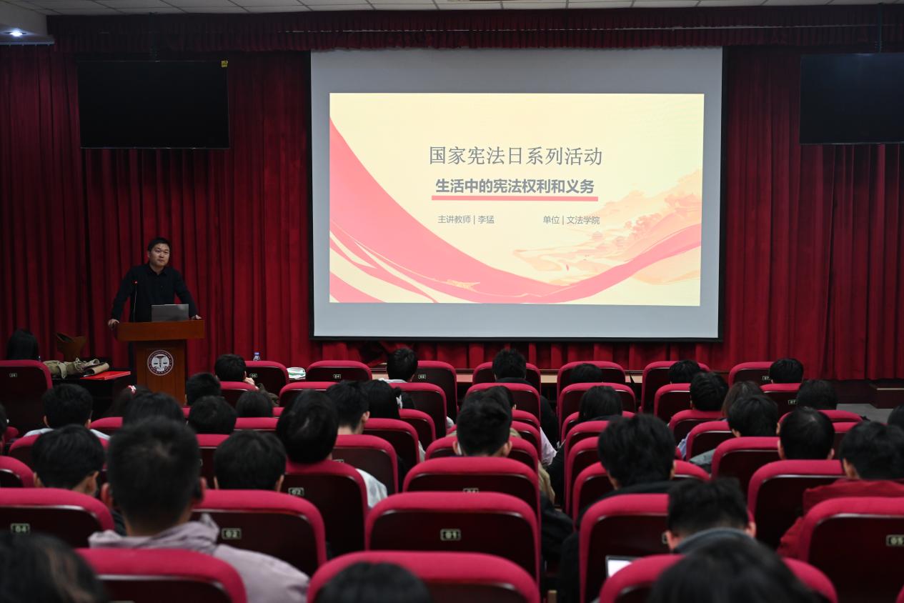12月6日晚,“生活中的宪法权利与义务”主题讲座于文理楼142顺利举办,本次讲座由太阳成集团tyc122ccvip法学系主任助理李猛博士主讲,吸引了各学院学生的积极参与。讲座以国家宪法日设立为切入点,强调宪法根本大法的最高法律效力及贯穿公民生活的重要性,围绕宪法与日常生活的关联,结合多类现实案例,系统讲解宪法通过部门法落地的路径,重点分析多个热点权利议题,阐释相关法律理念并明确公民权利边界与责任,强调大学生既是法律学习者也是法治建设参与者,此次讲座有效提升了学生依法维权与履行义务的意识。