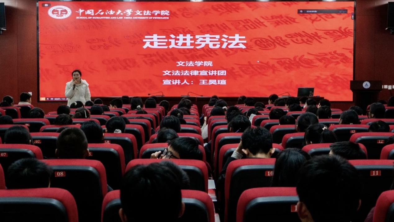 12月7日上午,文法法律宣讲团于文理楼142面向远程教育学院开展宪法宣讲活动。宣讲团成员贾宇凡讲解宪法核心内容及权利保障路径,结合典型案例阐释宪法权利的现实保障路径,延伸解读公民监督权利,引导学生树立“权利与义务相统一”的法治观念。宣讲结束后,“模拟法庭”环节精彩上演,学生们通过角色扮演还原司法流程,直观感受法治实践的严谨性。这种“读、听、演、悟”四位一体的沉浸式学习,打破传统普法模式,有效提升了学生对宪法精神的理解与认同。