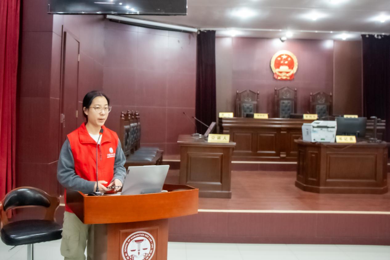 宣讲团成员对模拟法庭进行介绍
