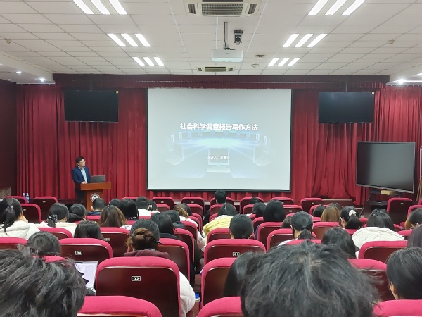 讲座伊始,吴睿佳首先阐述了社会调查报告写作训练的现实意义。随后,他围绕“一个选题、一个团队、一个计划、一个成果”四大核心环节,系统剖析了完成一项高质量社会调查与研究的关键路径。