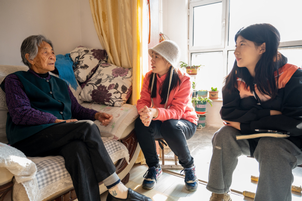 在另一户家庭中,老人兴致勃勃地向队员们分享了家乡的民俗风貌和过往岁月的趣闻轶事。当得知老人平时很少出门时,志愿服务队负责人贺小凡耐心劝导:“在有阳光的日子里,多出去走走,晒晒太阳,既能锻炼身体,也能结识新朋友,生活也会更充实。”临走前,她还反复叮嘱老人冬季要注意保暖,谨慎用火用电,同时拿出随身笔记本,详细记录下老人的生活需求与心愿,为后续再来看望老人进行更具针对性的服务打下基础。“孩子们工作忙,平时没人好好说话,今天这些年轻人陪我聊了这么久,还这么关心我,感觉心里暖烘烘的。”一位受访老人坦言,这样的陪伴让他在独居的生活中感受到了家人般的温暖。