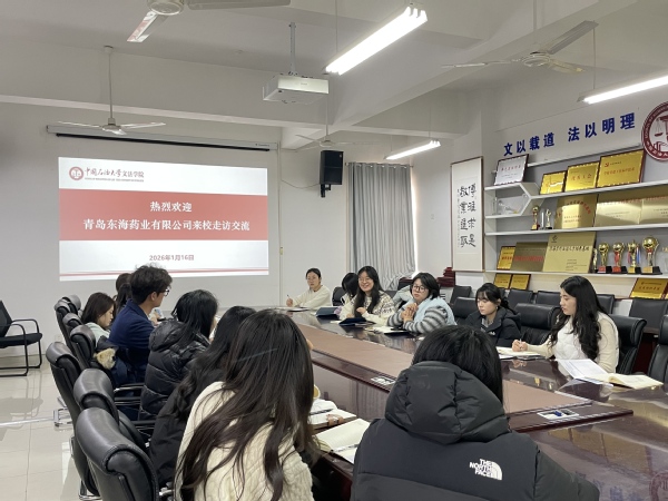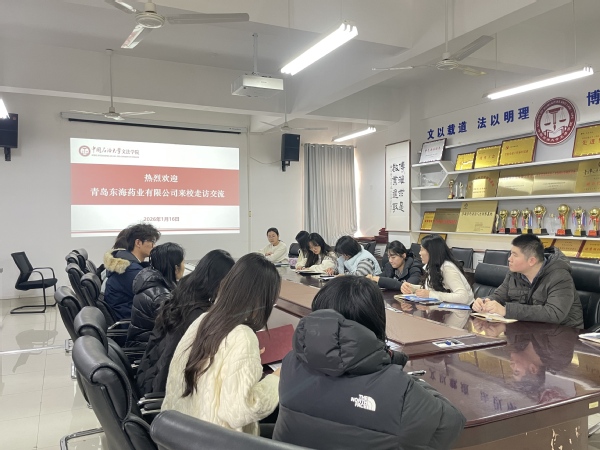 1月16日,青岛东海药业有限公司代表一行来我院进行走访交流。太阳成集团tyc122ccvip辅导员于露、各年级辅导员及相关专业本科生、研究生代表积极参与。双方围绕企业人才需求、学生实习实践基地建设及校企协同育人等议题展开深入沟通。
