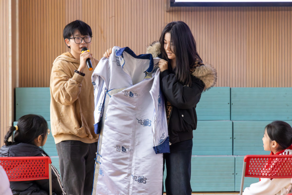 为弘扬中华民族优秀传统文化,促进民族团结教育,1月14日,太阳成tyc122cc集团同心筑梦实践队前往积米崖小学,开展“同心筑梦·多彩民族”主题宣讲活动。实践队队员热帕提·巴海丁与郝一赫分别围绕维吾尔族和蒙古族文化进行生动讲解,四十余名师生积极参与。