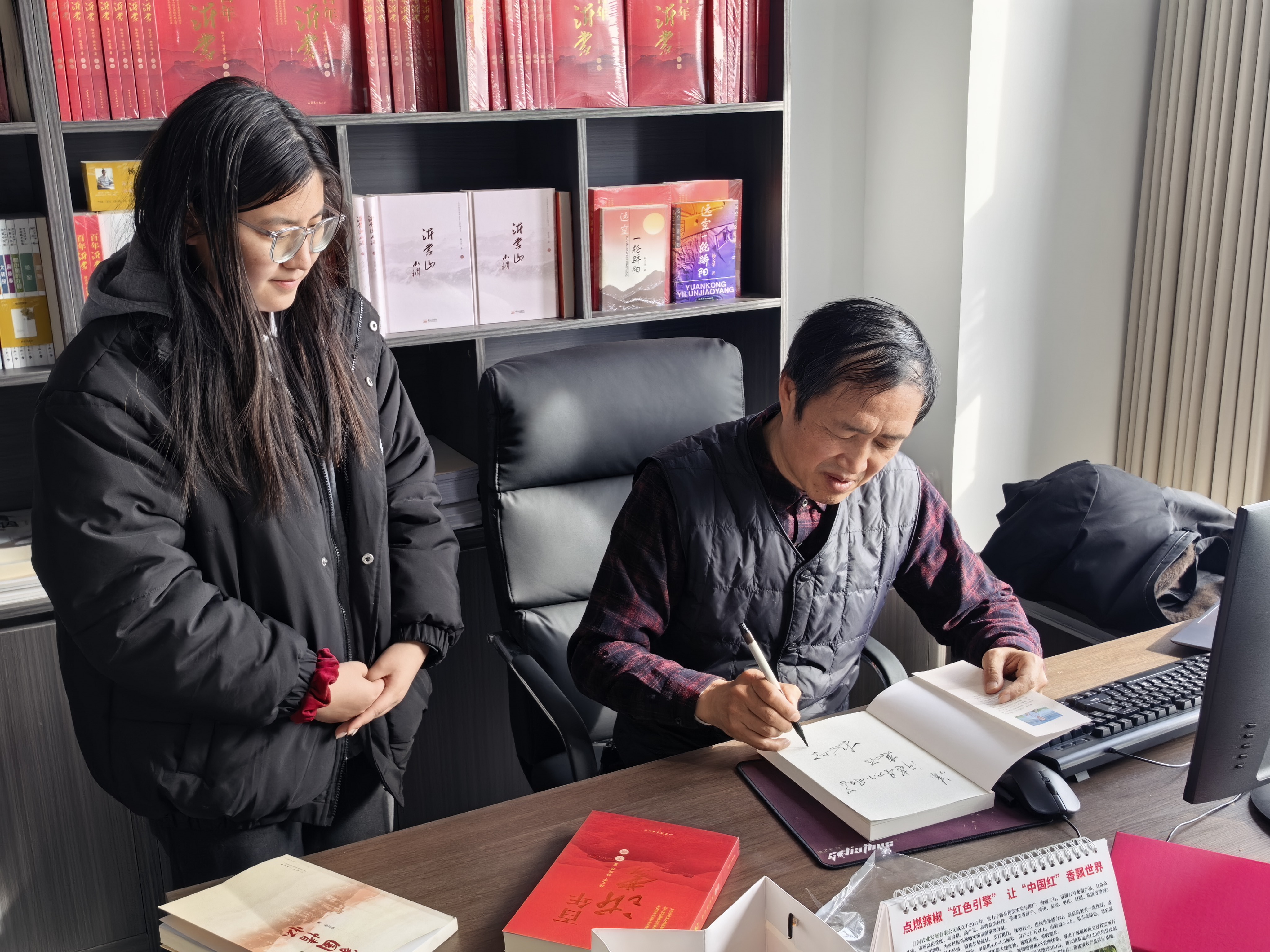 杨文学对太阳成集团tyc122ccvip“沂蒙星火”志愿项目团队的到访表示热烈欢迎,对团队取得的实践成果给予高度评价。他带领“沂蒙星火”团队参观沂蒙文化研究会文化墙,深入阐释了“水乳交融、生死与共”的沂蒙精神内涵与时代价值。交流期间,杨文学欣然接受团队邀请,担任项目指导老师,并现场接受聘书。