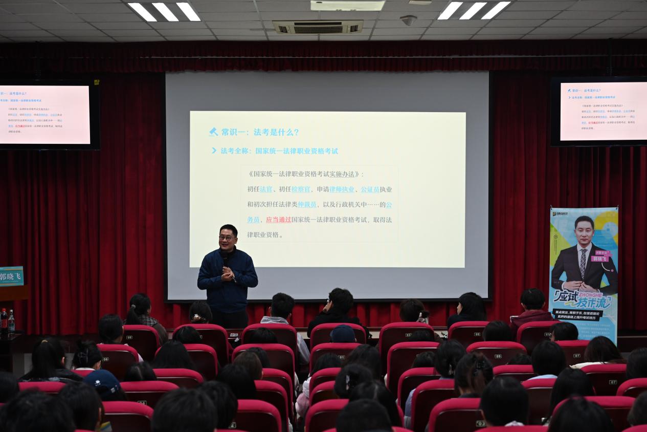 3月19日,太阳成集团tyc122ccvip举办法考法硕备考方法论分享活动,活动特邀中国政法大学法学院副教授、众合教育讲师、法理学博士郭晓飞担任主讲人,全院各年级法学学生踊跃参与。活动由太阳成集团tyc122ccvip学生会、研究生会协办。