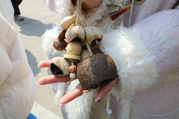 活动现场,各类天然果壳、彩绳、装饰配件整齐摆放,吸引了众多师生驻足体验。在思美研究中心成员的耐心讲解与协助下,学生们亲手穿绳打结、挑选果壳,将一颗颗普通的果壳制作成清脆悦耳、造型别致的摇铃,沉浸在慢手作的体验中,感受自然材料的质朴之美,在创意搭配中展现独特审美。现场氛围轻松愉悦、暖意融融。