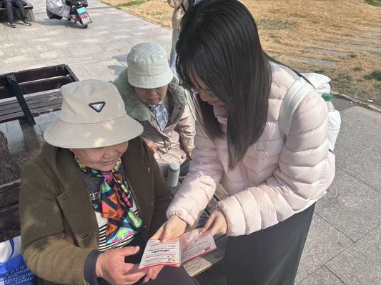 而法学2402团支部成员们则选择深入社区,手持普法宣传册,主动与居民展开面对面交流。支部成员们或立于楼宇之间,或坐于凉亭石凳,主动地为往来群众讲解宣传册中与消费者权益相关的法律知识。讲解过程中,支部成员们注重结合具体案例,以通俗语言阐释法律条文背后的情理与法理,对居民们提出的实际问题逐一回应,现场互动频频,气氛庄重而融洽。
