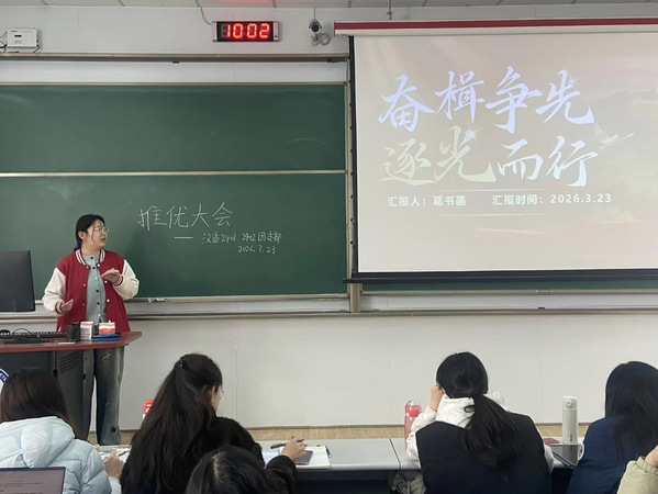 2026年3月23日,汉语2401团支部与汉语2402团支部于西环303教室联合召开推优入党会议。本次会议旨在从严从优选拔思想政治过硬、综合表现突出的优秀团员,为党组织输送优质青年力量,2024级辅导员张琳苑出席并全程指导,两个团支部全体团员共同参与民主评议工作。